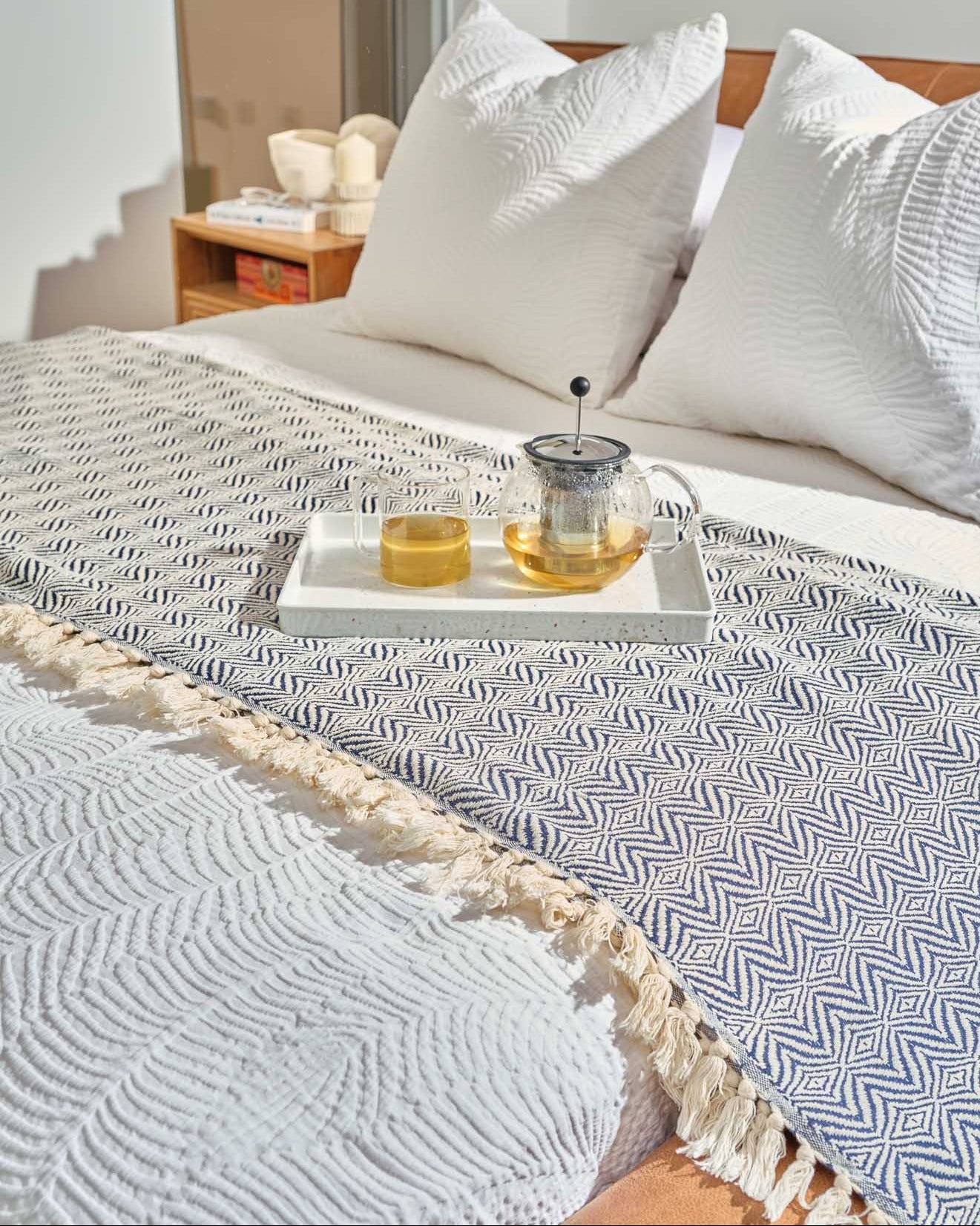 A harmony of softness and subtle geometry, Midnight Diamond is crafted from luxurious organic cotton with a delicately woven diamond pattern. Its deep, calming tones evoke the quiet beauty of nightfall, offering warmth, texture, and timeless style. Lightweight yet cozy, it’s the perfect layer for elevating any space with effortless comfort.