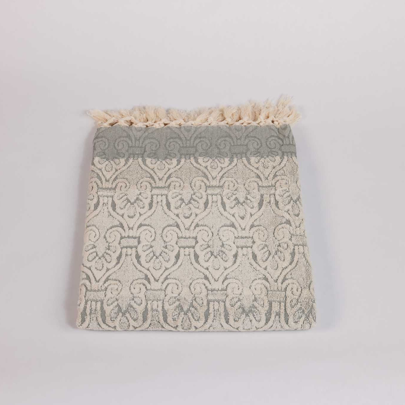 A tribute to timeless craftsmanship and refined elegance. Featuring an intricate jacquard-style weave and thick looped texture, each piece blends heritage artistry with everyday comfort. Crafted from premium cotton for a plush yet lightweight feel, this collection brings a touch of regal sophistication to any home.